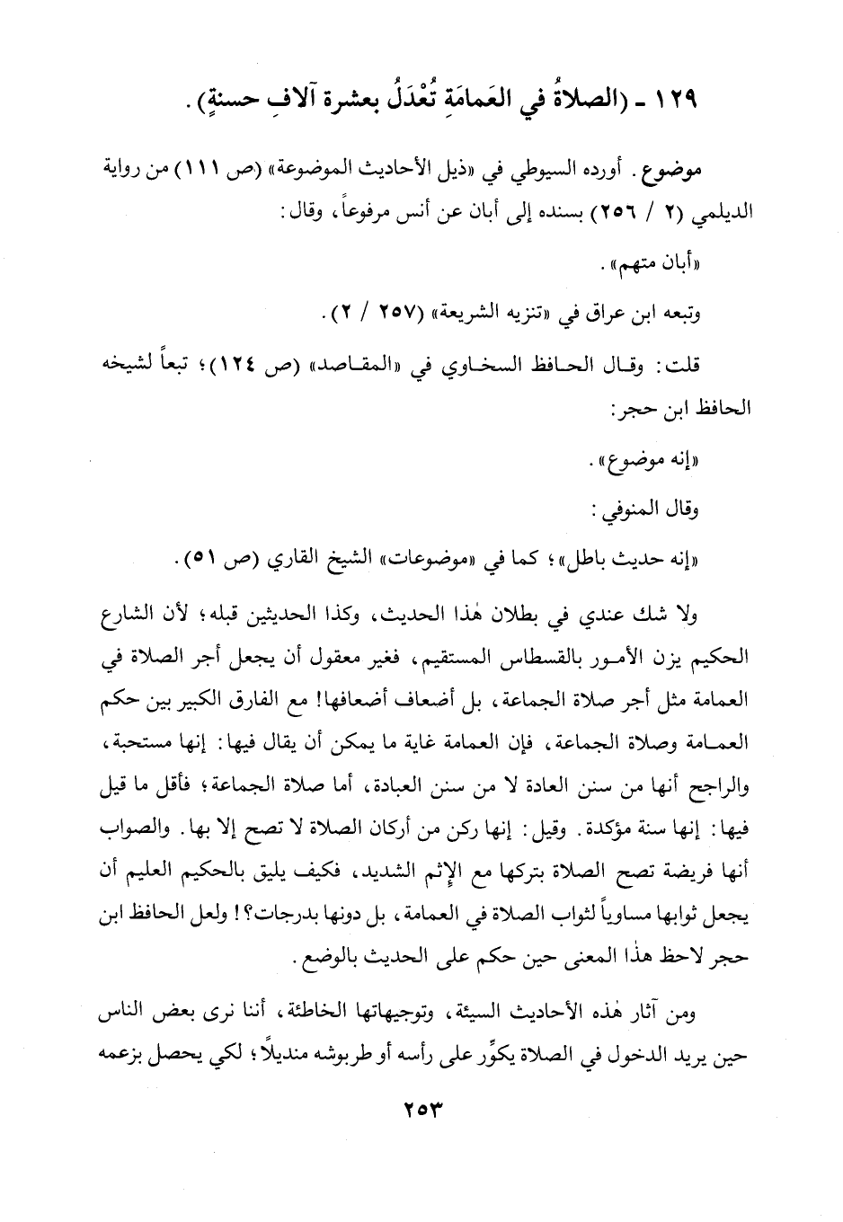 129 - " الصلاة في العمامة تعدل بعشرة آلاف حسنة ".
