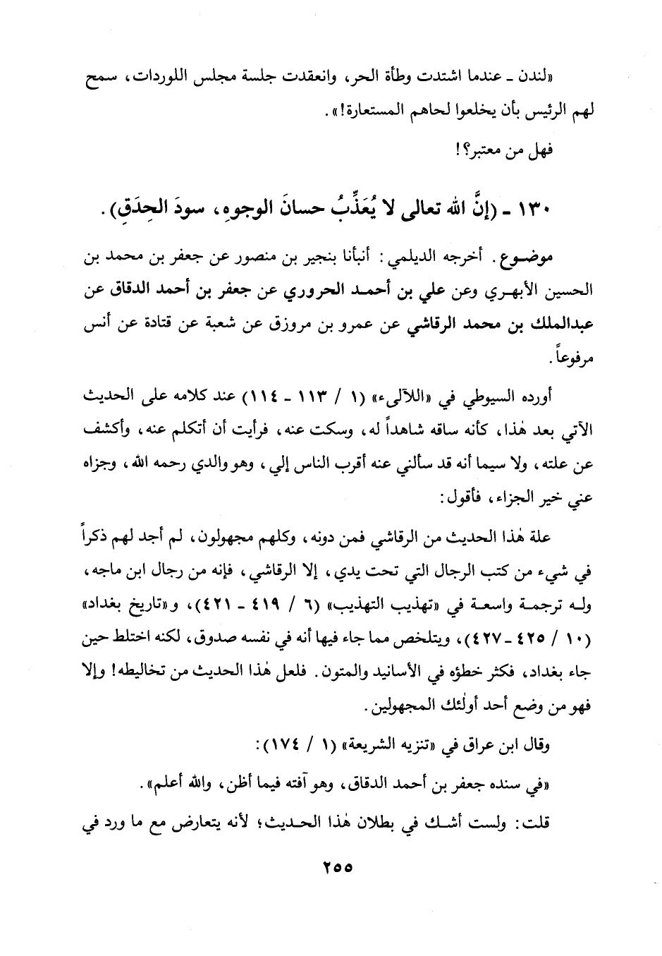 130 - " إن الله تعالى لا يعذب حسان الوجوه سود الحدق ".