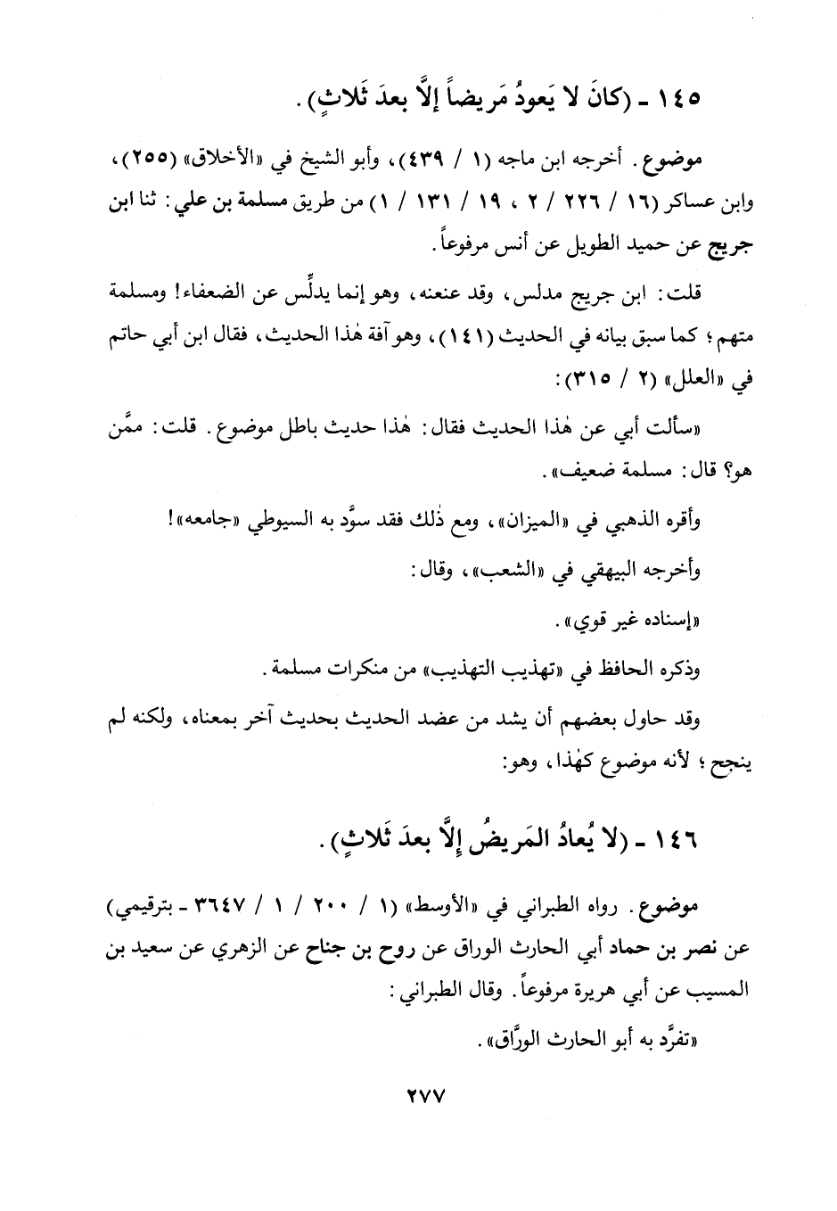 145 - " كان لا يعود مريضا إلا بعد ثلاث ".