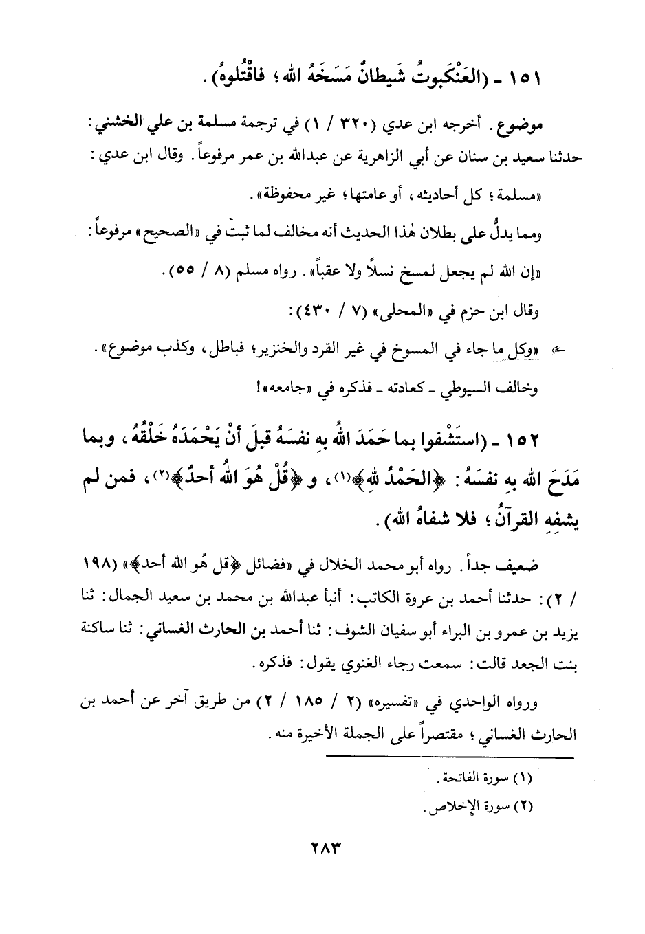 151 - " العنكبوت شيطان مسخه الله فاقتلوه ".
