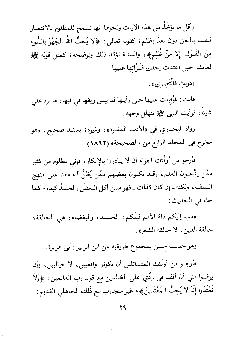 فأرجو من أولئك المتسائلين أن يكونوا واقعيين، لا خياليين، وأن يرضوا مني أن أقف في ردِّي على الظالمين مع قول رب العالمين: "وَلاَ تَعْتَدُوا إِنَّهُ لا يُحِبُّ المُعْتَدينَ "؟؛غير متجاوب مع ذلك الجاهلي القديم: