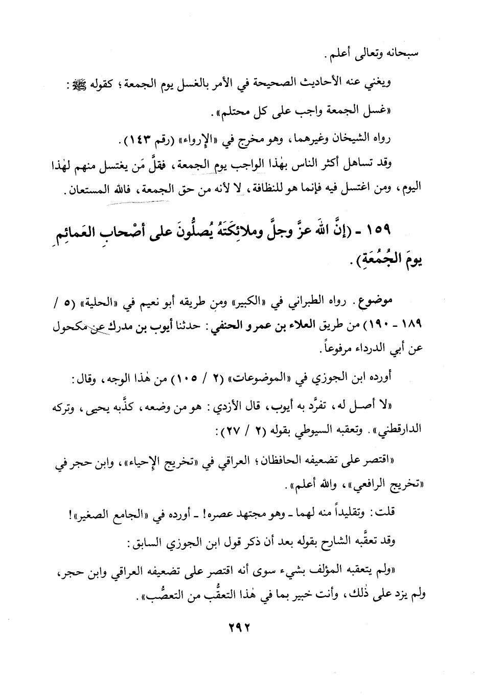 159 - " إن الله عز وجل وملائكته يصلون على أصحاب العمائم يوم الجمعة ".
