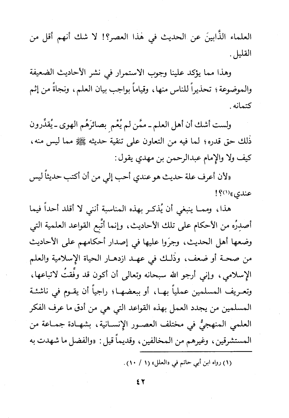 ولست أشك أن أهل العلم- ممَّن لم يُعْمِ بصائرَهُم الهوى- يُقدِّرون ذلك حق قدره؛ لما فيه من التعاون على تنقية حديثه - صلى الله عليه وسلم - مما ليس منه، كيف [و] (*) لا والِإمام عبد الرحمن بن مهدي يقول: