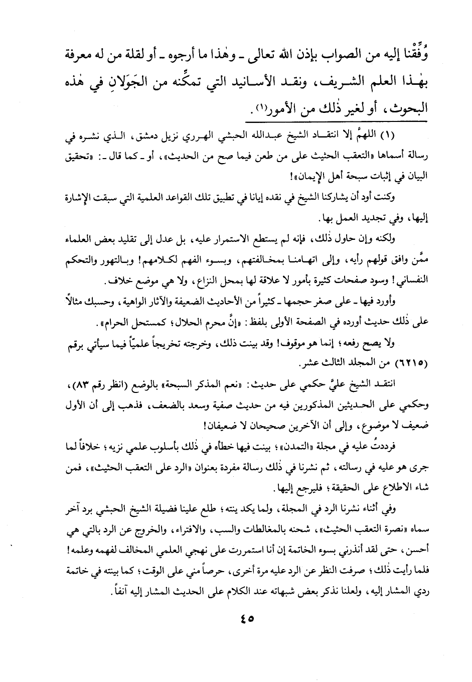 (1) اللهم إلا انتقاد الشيخ عبد الله الحبشي الهرري نزيل دمشق، الذي نشره في رسالة أسماها "التعقب الحثيث على من طعن فيما صح من الحديث "، أو- كما قال-: "تحقيق البيان في إثبات سبحة أهل الإيمان "!
