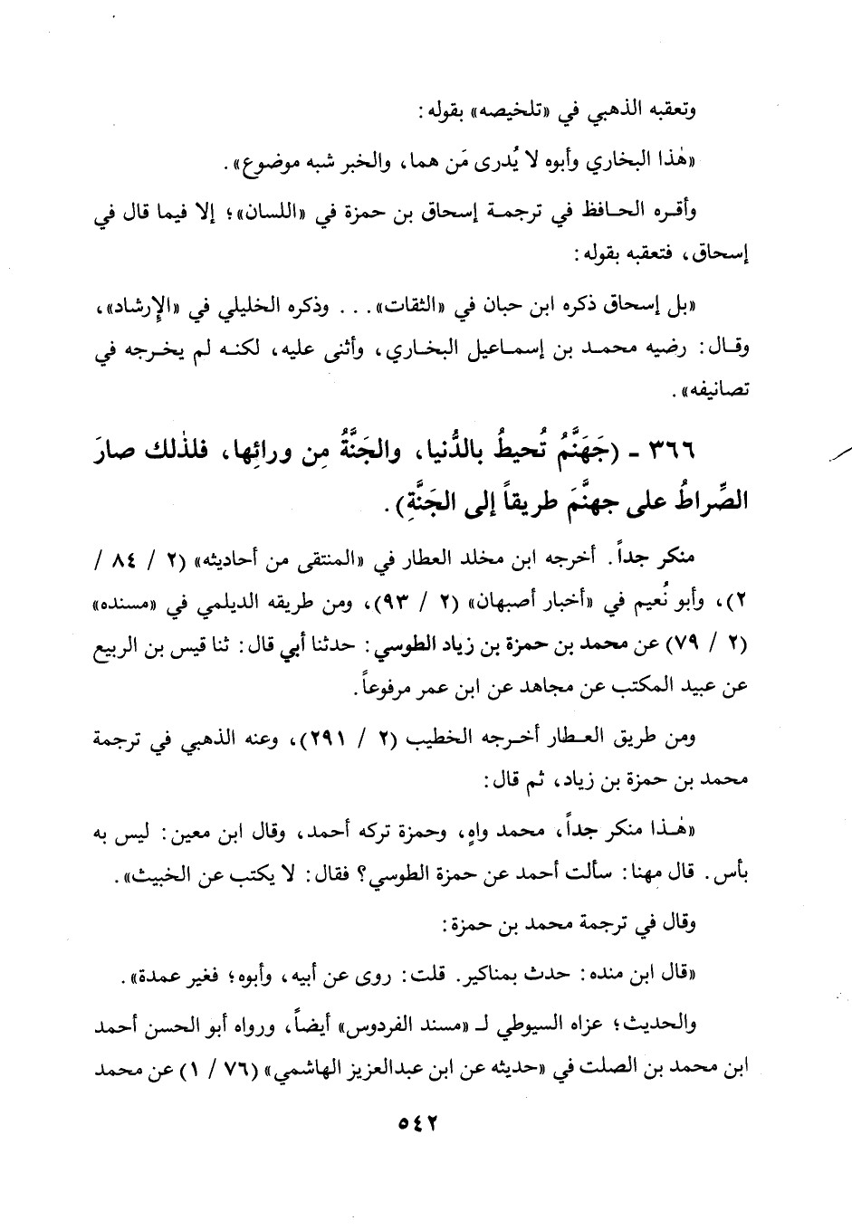 366 - " جهنم تحيط بالدنيا، والجنة من ورائها، فلذلك صار الصراط على جهنم طريقا إلى الجنة ".