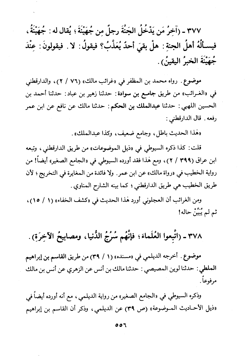 قلت: كذا ذكره السيوطي في " ذيل الموضوعات " من طريق الدارقطني، وتبعه ابن عراق (399 / 2) ومع هذا فقد أورده السيوطي في " الجامع الصغير " أيضا! من رواية الخطيب في " رواة مالك " عن ابن عمر، ولا فائدة من المغايرة في التخريج لأن طريق الخطيب هي طريق الدارقطني كما بينه الشارح المناوي.