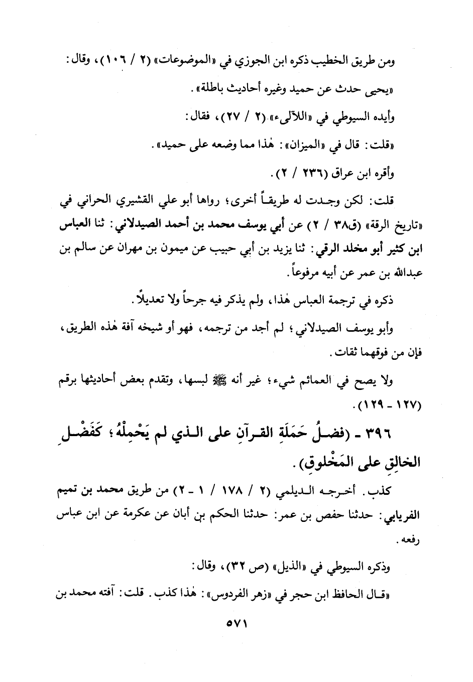 396 - " فضل حملة القرآن على الذى لم يحمله كفضل الخالق على المخلوق ".