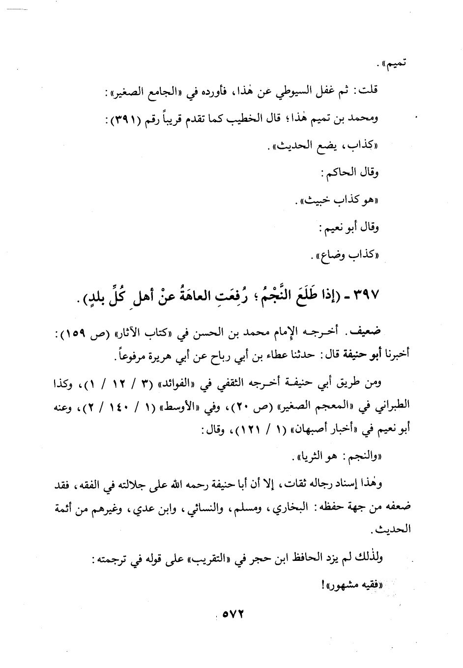 وهذا إسناد رجاله ثقات إلا أن أبا حنيفة رحمه الله على جلالته في الفقه قد ضعفه من جهة حفظه البخاري، ومسلم، والنسائي، وابن عدي، وغيرهم من أئمة الحديث، ولذلك لم يزد الحافظ ابن حجر في " التقريب " على قوله في ترجمته: فقيه مشهور! .