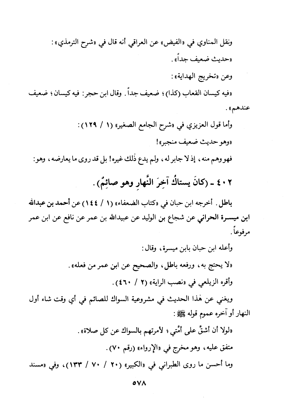 402 - " كان يستاك آخر النهار وهو صائم ".