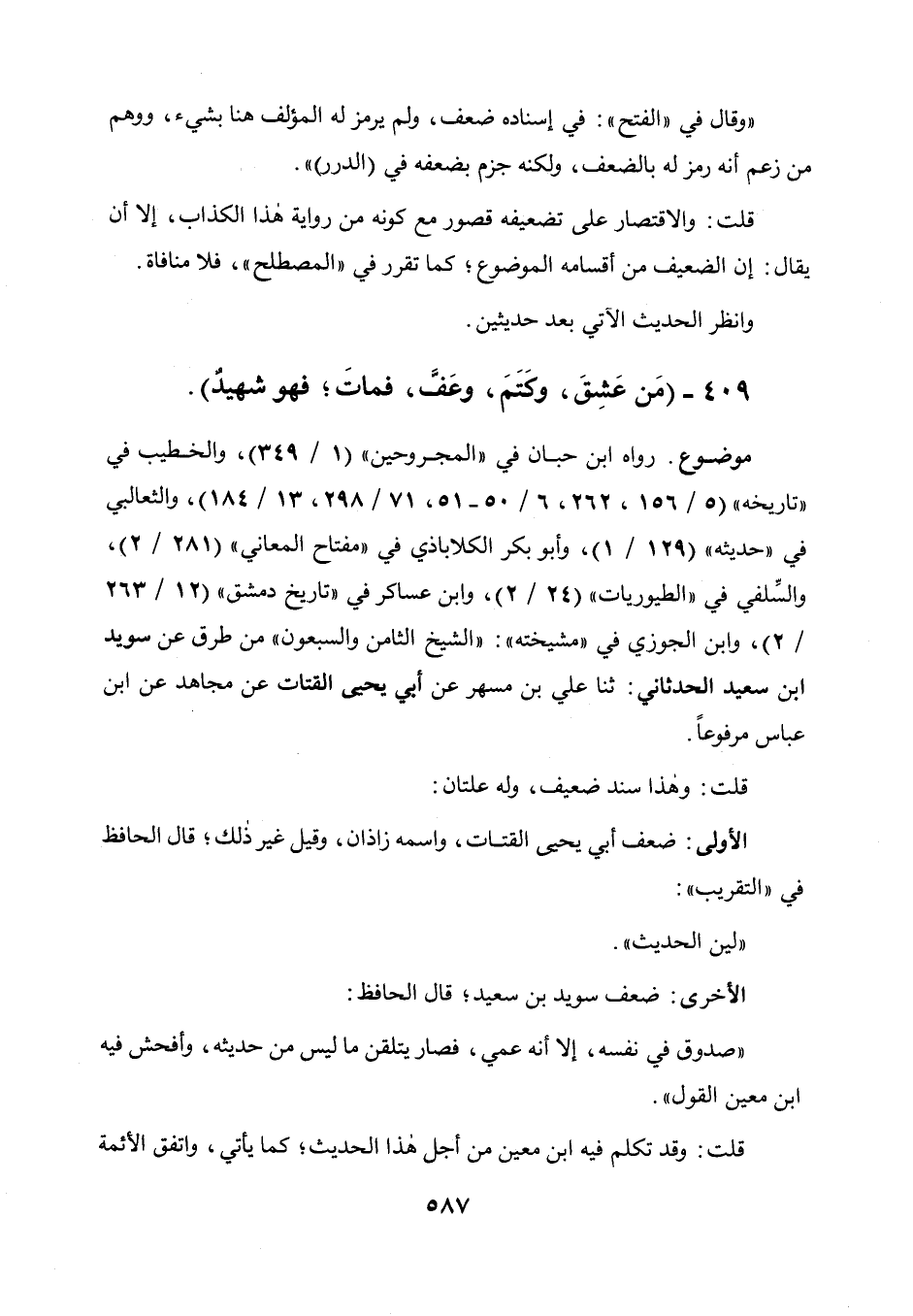 409 - " من عشق وكتم وعف فمات فهو شهيد ".