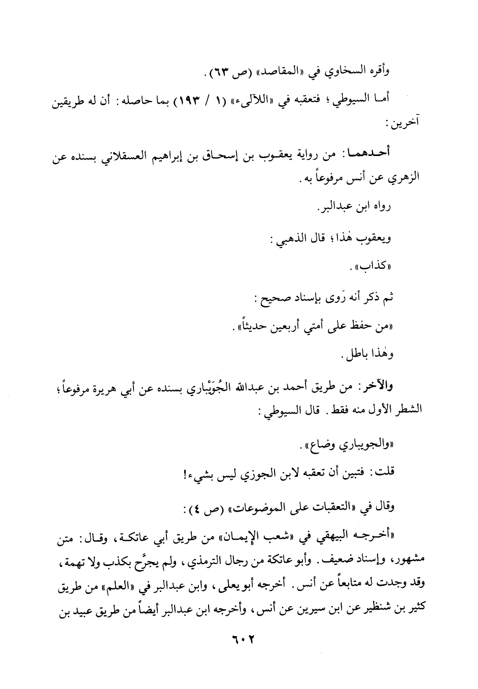 وأقره السخاوي في " المقاصد " (ص 63) ، أما السيوطي فتعقبه في " اللآليء " (1 / 193) بما حاصله: أن له طريقين آخرين: