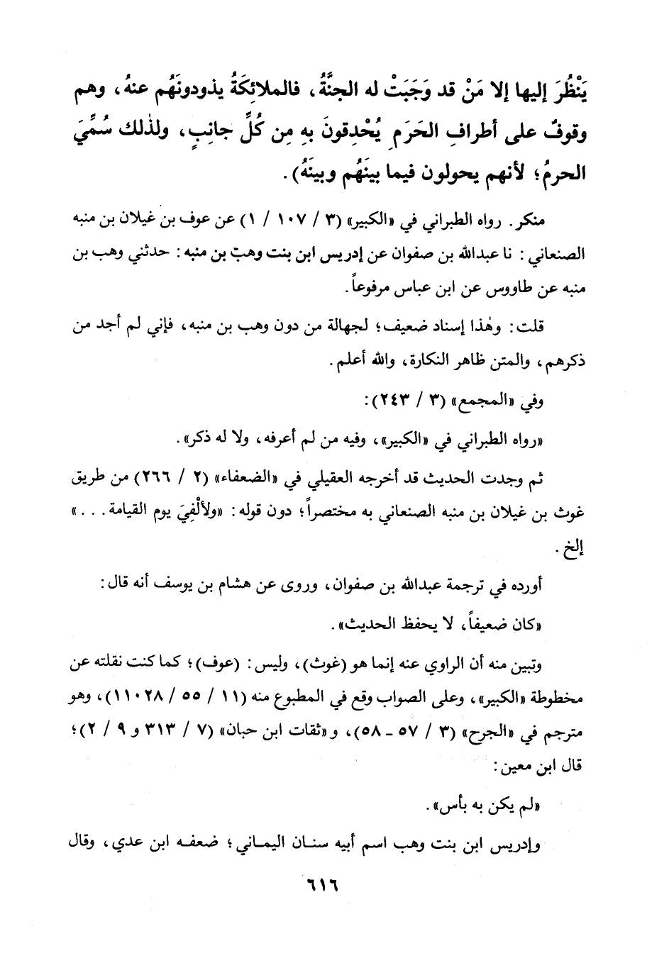 قلت: وهذا إسناد ضعيف لجهالة من دون وهب بن منبه، فإني لم أجد من ذكرهم، والمتن ظاهر النكارة، والله أعلم، وفي " المجمع " (3 / 243) :