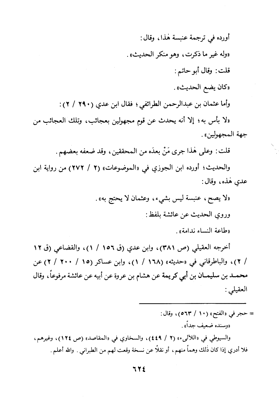 قلت: وقال أبو حاتم كان يضع الحديث، وأما عثمان بن عبد الرحمن الطرائفي.