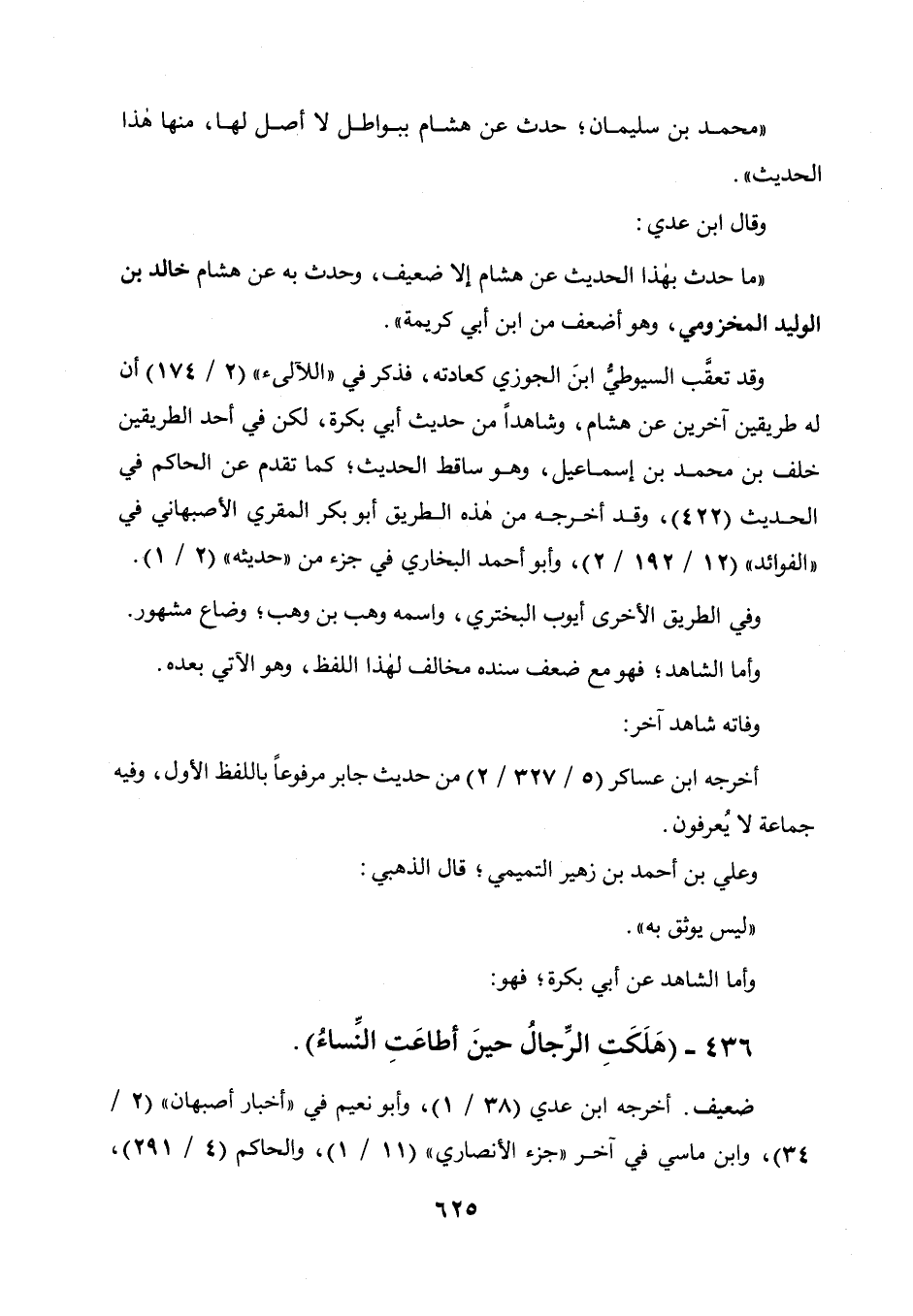 وقد تعقب السيوطي ابن الجوزي كعادته، فذكر في " اللآليء " (2 / 174) أن له طريقين آخرين عن هشام، وشاهدا من حديث أبي بكرة، لكن في أحد الطريقين خلف بن محمد بن إسماعيل، وهو ساقط الحديث، كما تقدم عن الحاكم في الحديث (422) ، وقد أخرجه من هذه الطريق أبو بكر المقري الأصبهاني في " الفوائد " (12 / 192 / 2) وأبو أحمد البخاري في جزء من حديثه (2 / 1) .