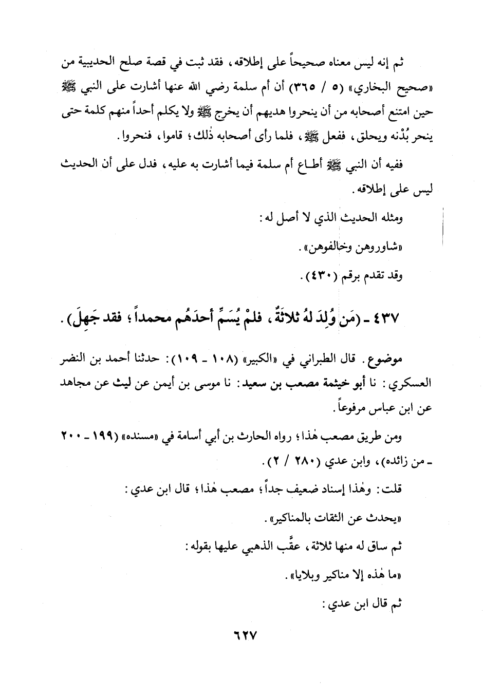 437 - " من ولد له ثلاثة فلم يسم أحدهم محمدا فقد جهل ".