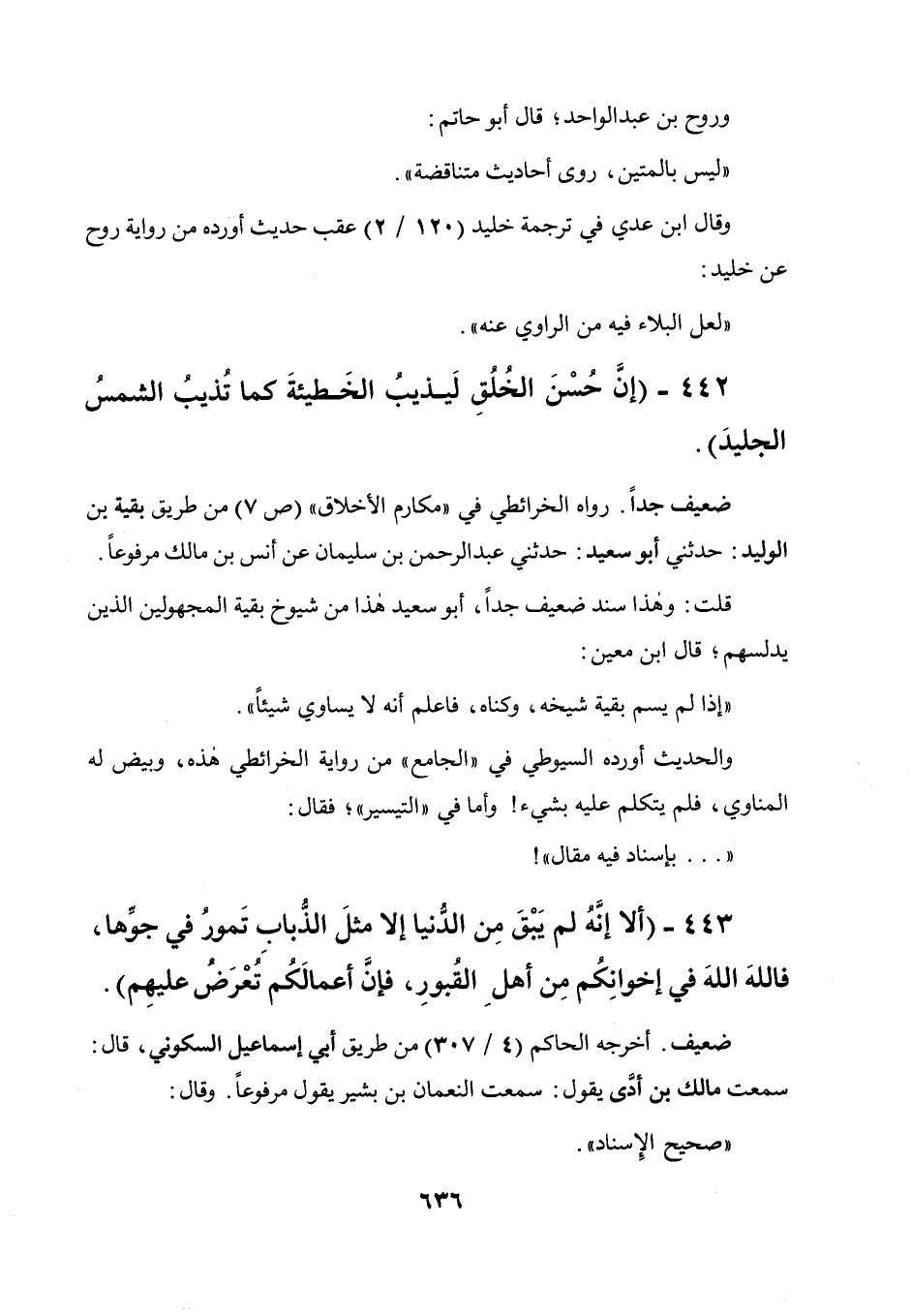 443 - " ألا إنه لم يبق من الدنيا إلا مثل الذباب تمور فى جوها، فالله الله فى إخوانكم من أهل القبور، فإن أعمالكم تعرض عليهم ".