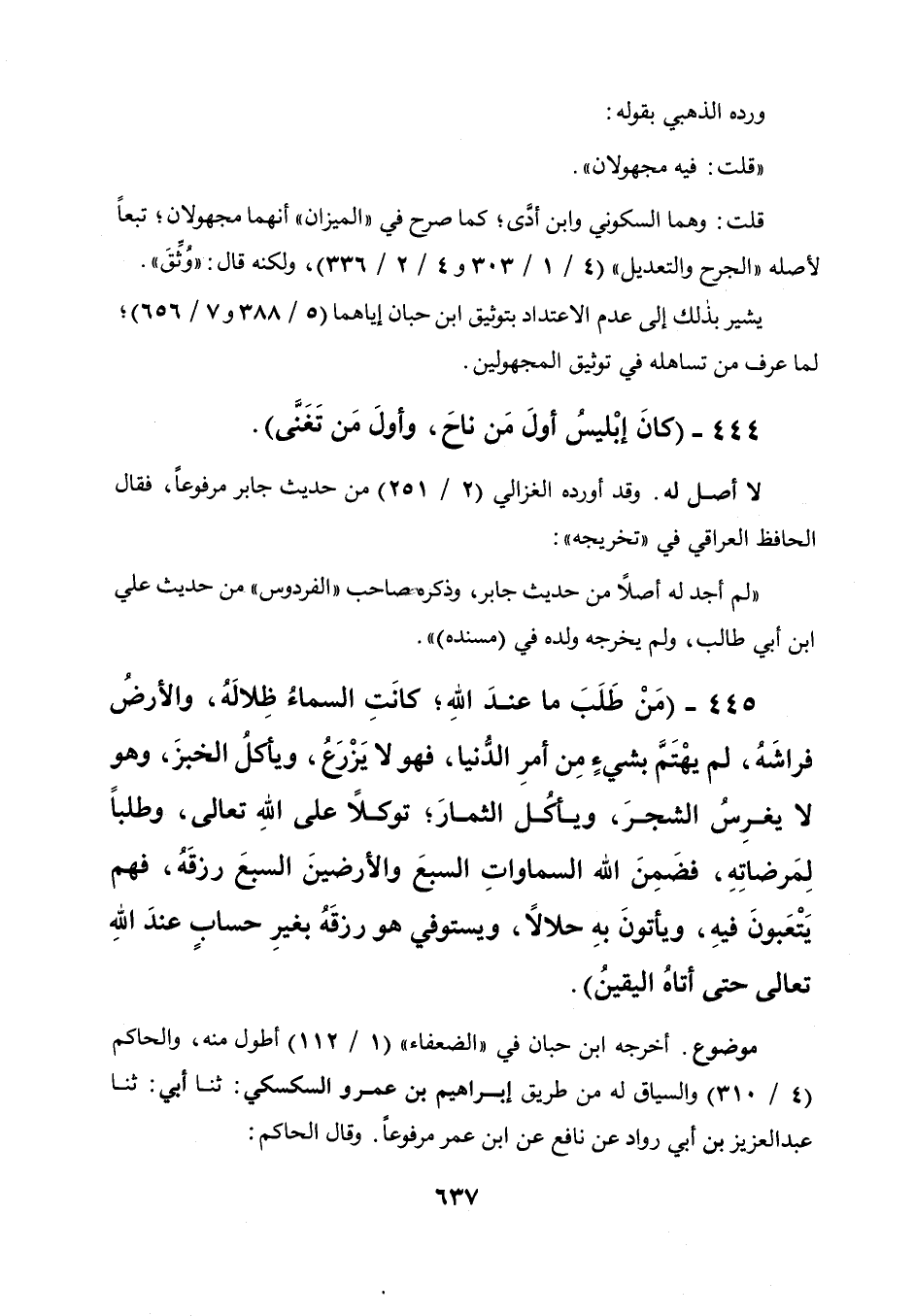 444 - " كان إبليس أول من ناح وأول من تغنى ".