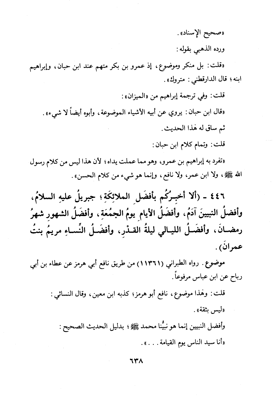 446 - " ألا أخبركم بأفضل الملائكة جبريل عليه السلام، وأفضل النبيين آدم، وأفضل الأيام يوم الجمعة، وأفضل الشهو ر شهر رمضان، وأفضل الليالي ليلة القدر، وأفضل النساء مريم بنت عمران ".