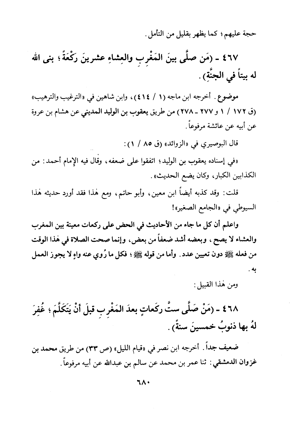 468 - " من صلى ست ركعات بعد المغرب قبل أن يتكلم غفر له بها ذنوب خمسين سنة ".