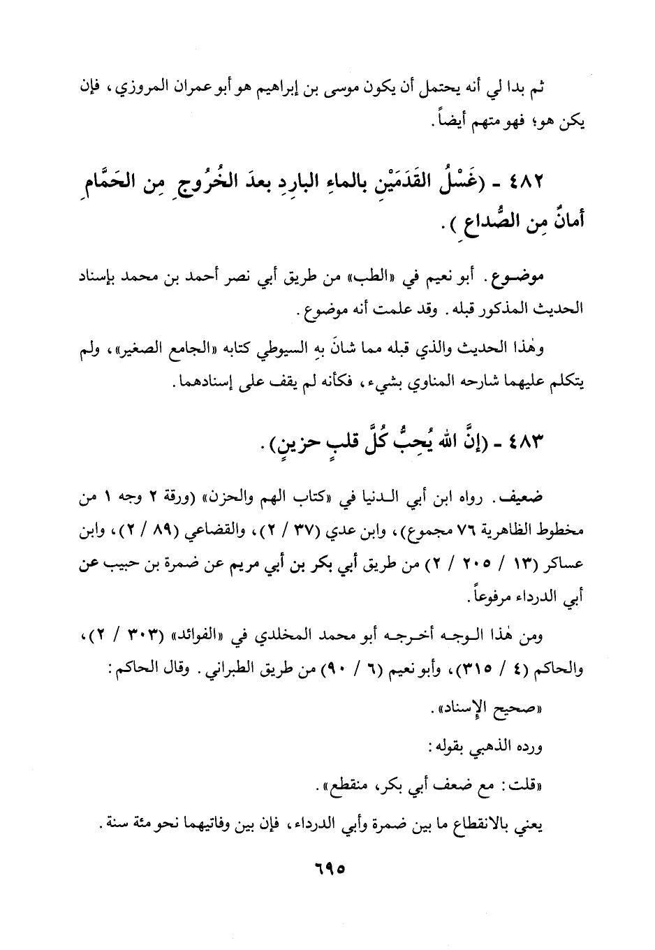 482 - " غسل القدمين بالماء البارد بعد الخروج من الحمام أمان من الصداع ".