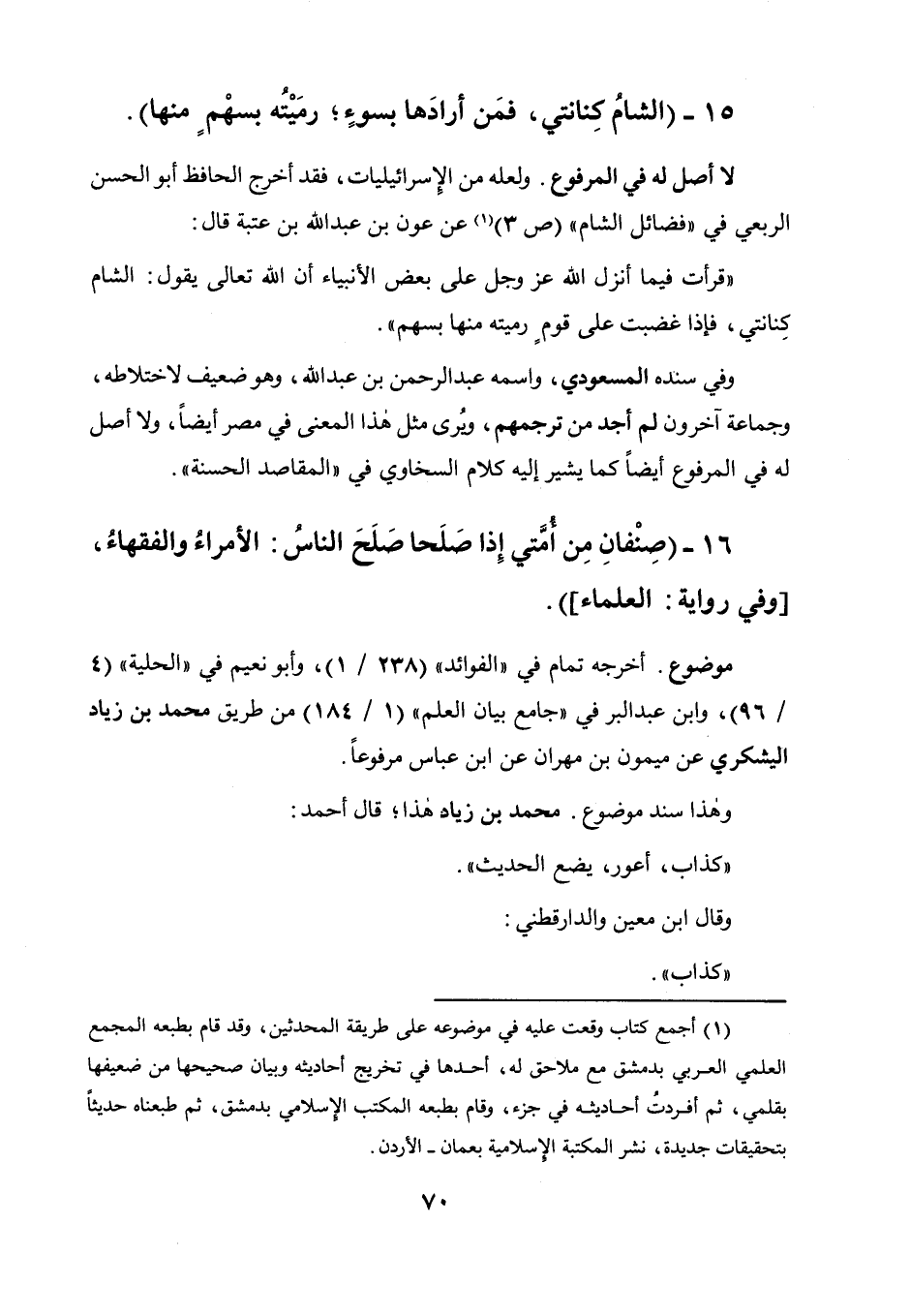 16 - " صنفان من أمتي إذا صلحا صلح الناس: الأمراء والفقهاء، [وفي رواية: العلماء] ".