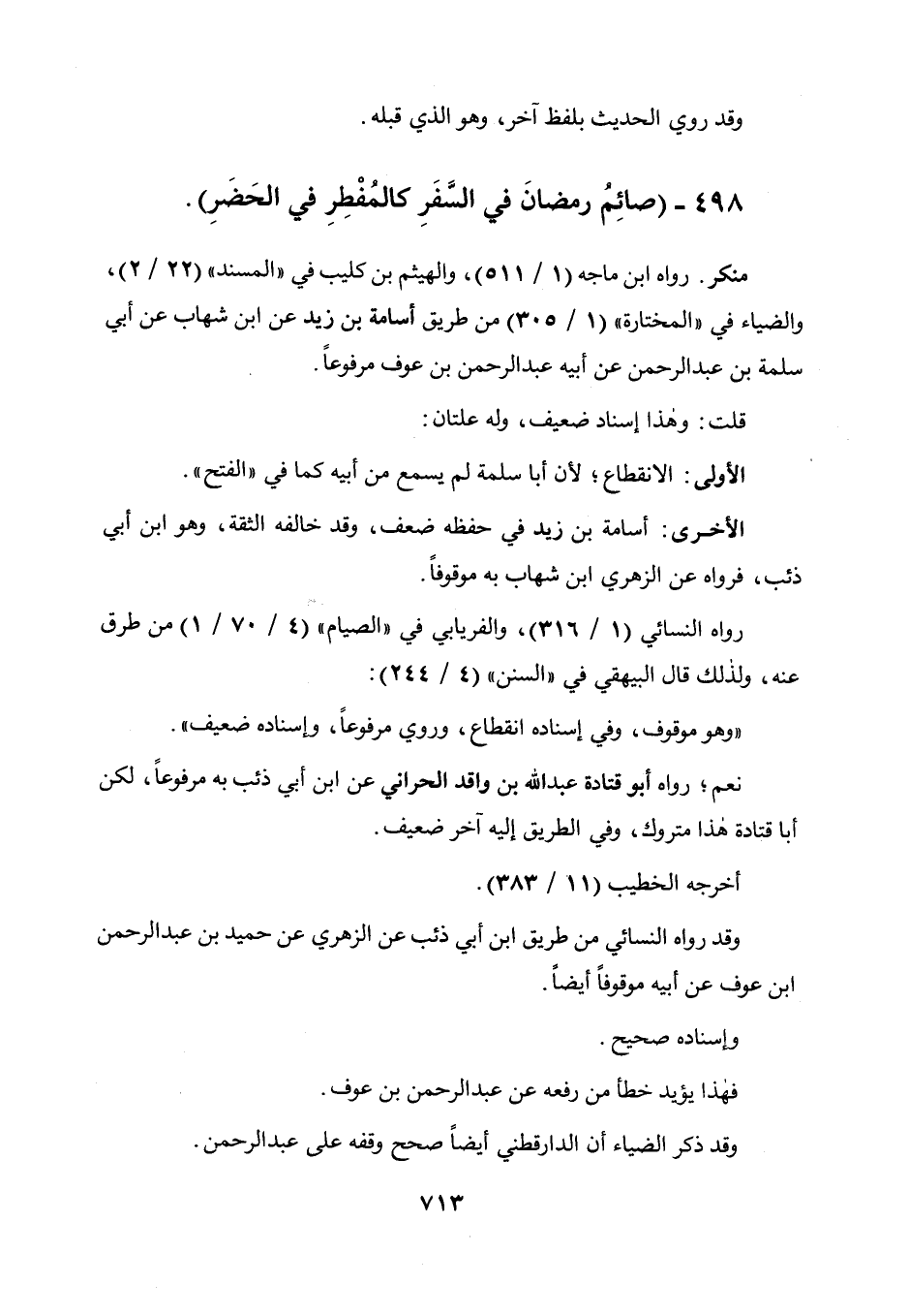 498 - " صائم رمضان فى السفر كالمفطر فى الحضر ".