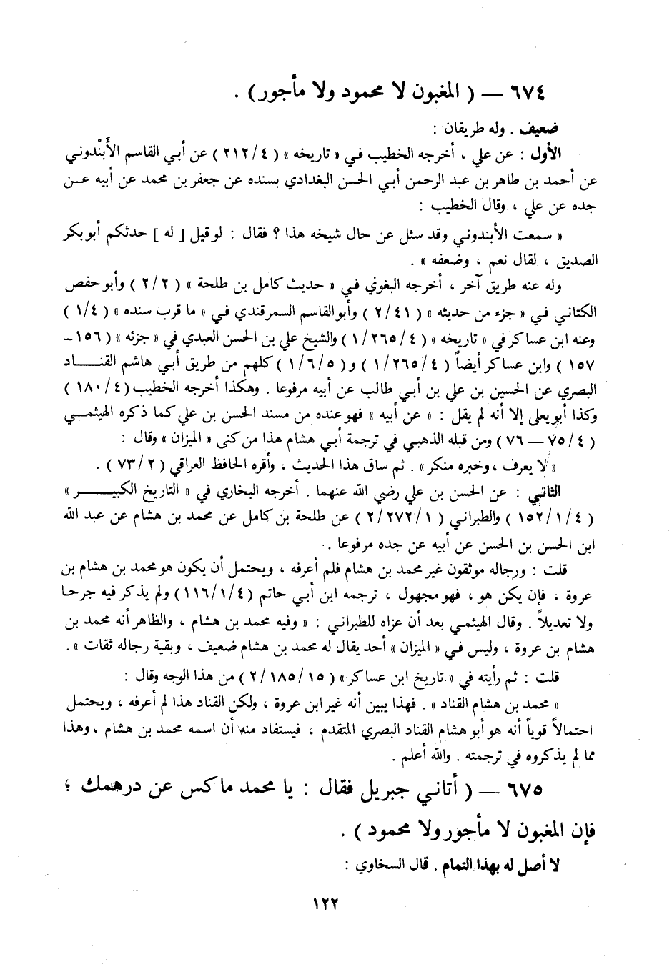 675 - " أتاني جبريل فقال: يا محمد ماكس عن درهمك، فإن المغبون لا مأجور ولا محمود ".