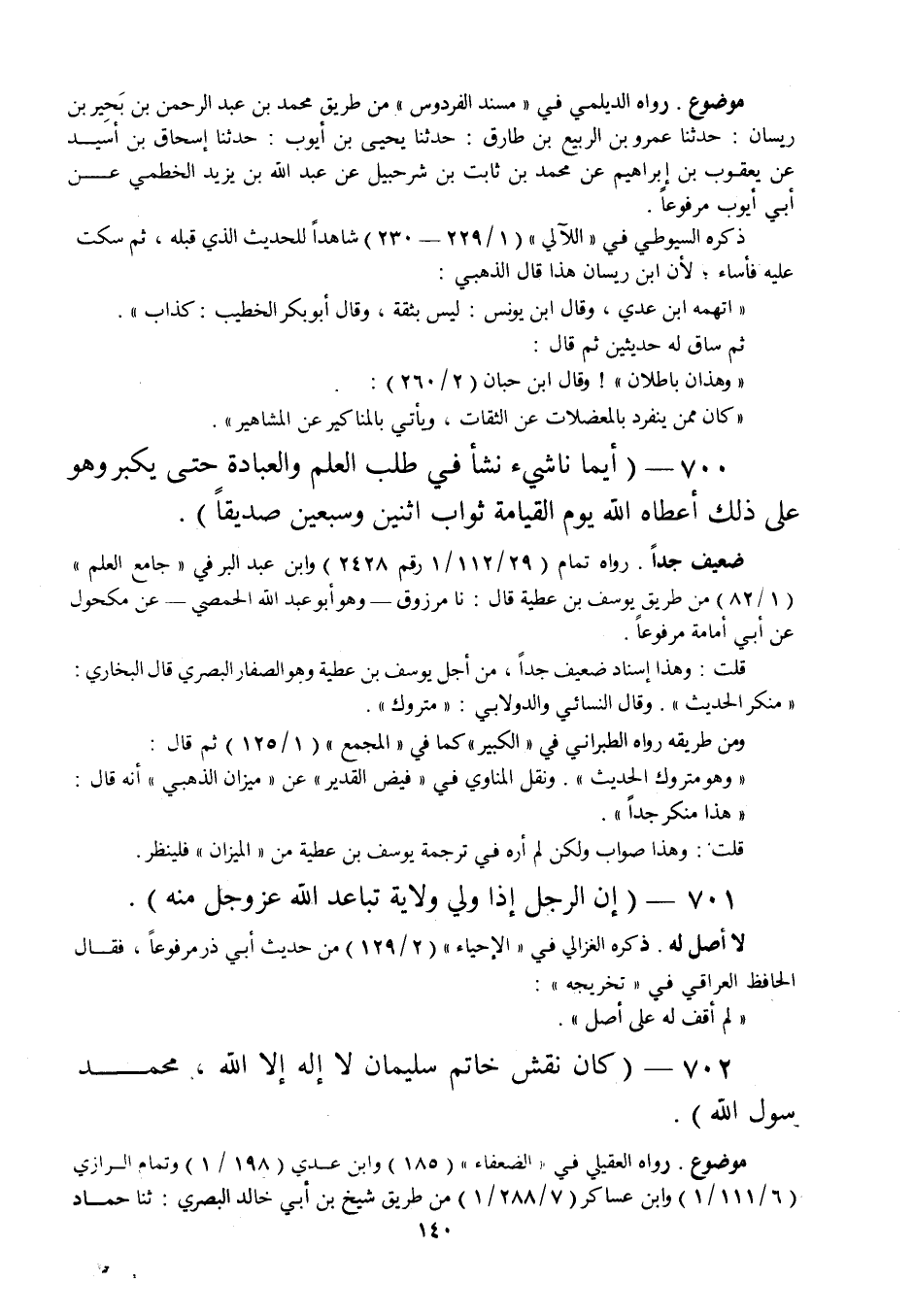 700 - " أيما ناشئ نشأ في طلب العلم والعبادة حتى يكبر وهو على ذلك أعطاه الله يوم القيامة ثواب اثنين وسبعين صديقا ".