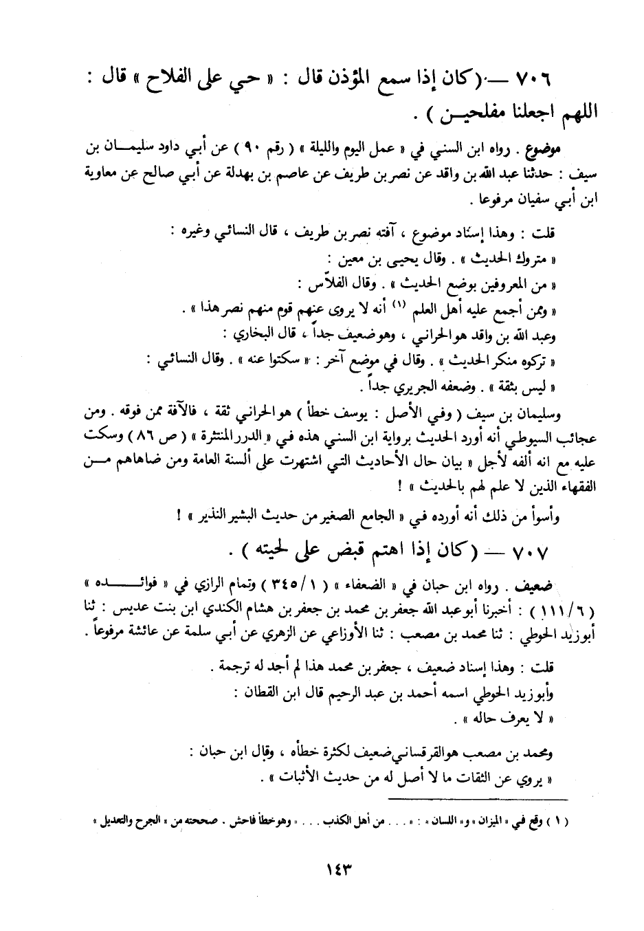 وسليمان بن سيف (وفي الأصل: يوسف خطأ) هو الحراني ثقة، فالآفة ممن فوقه. ومن عجائب السيوطي أنه أورد الحديث برواية ابن السني هذه في " الدرر المنتثرة " (ص 86) وسكت عليه مع أنه ألفه لأجل " بيان حال الأحاديث التي اشتهرت على ألسنة العامة ومن ضاهاهم من الفقهاء الذين لا علم لهم بالحديث "! وأسوأ من ذلك أنه أورده في " الجامع الصغير من حديث البشير النذير "!