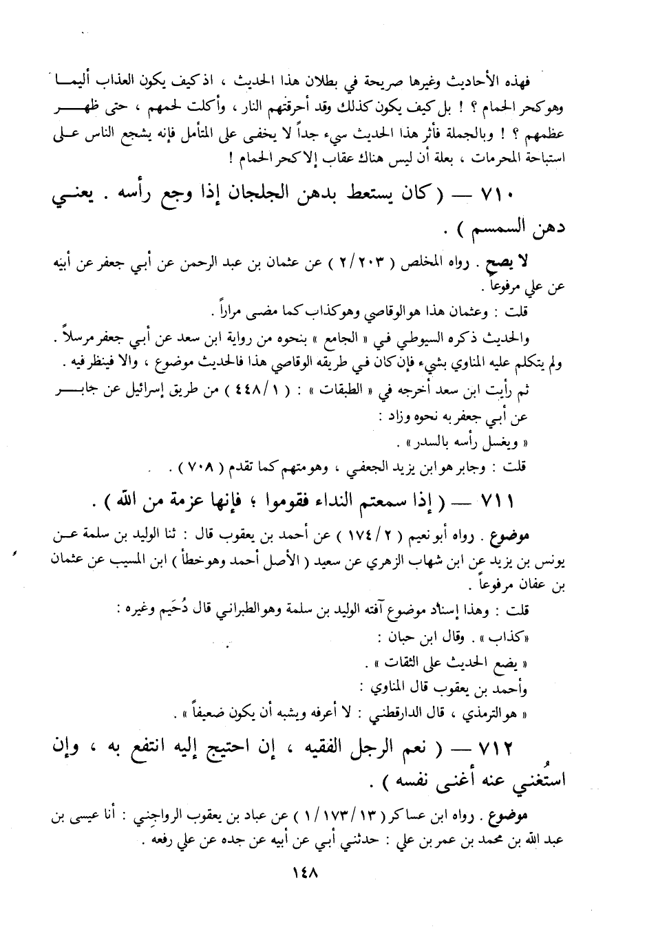710 - " كان يستعط بدهن الجلجان إذا وجع رأسه. يعني دهن السمسم ".