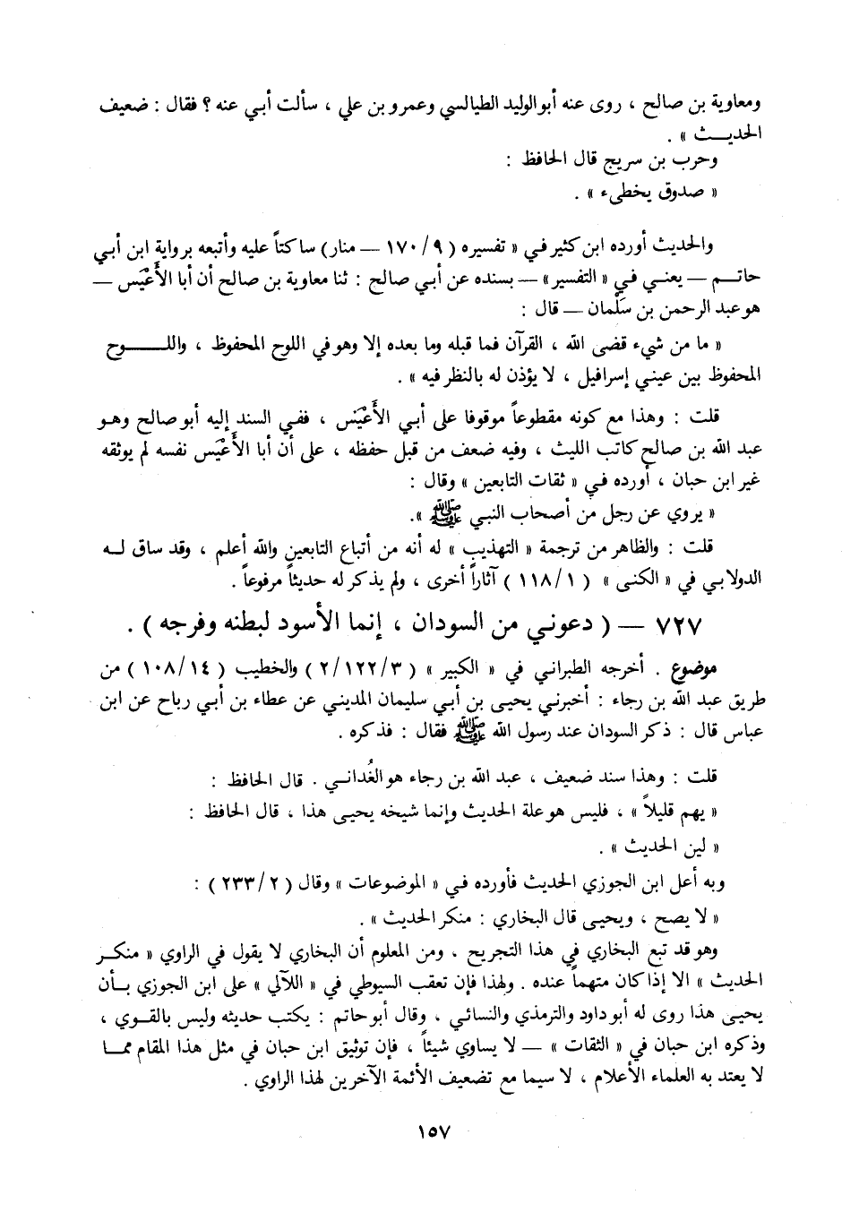 ومعاوية بن صالح، روى عنه أبو الوليد الطيالسي وعمرو بن علي، سألت أبي عنه؟ فقال: ضعيف الحديث ". وحرب بن سريج قال الحافظ: " صدوق يخطئ ". والحديث أورده ابن كثير في " تفسيره " (9 / 170 - منار)