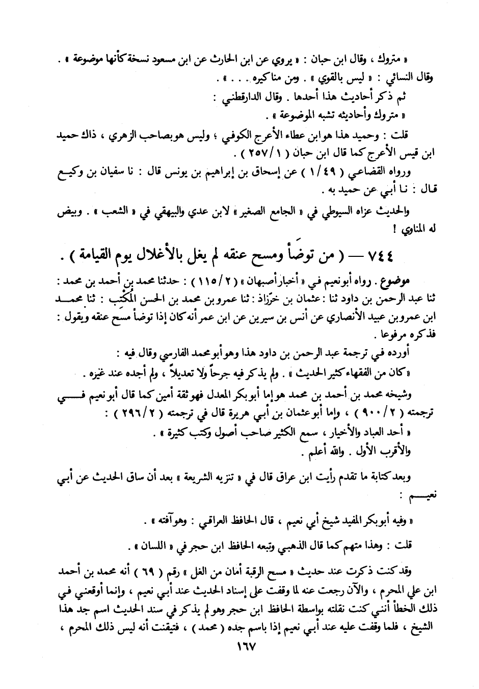 744 - " من توضأ ومسح عنقه لم يغل بالأغلال يوم القيامة ".