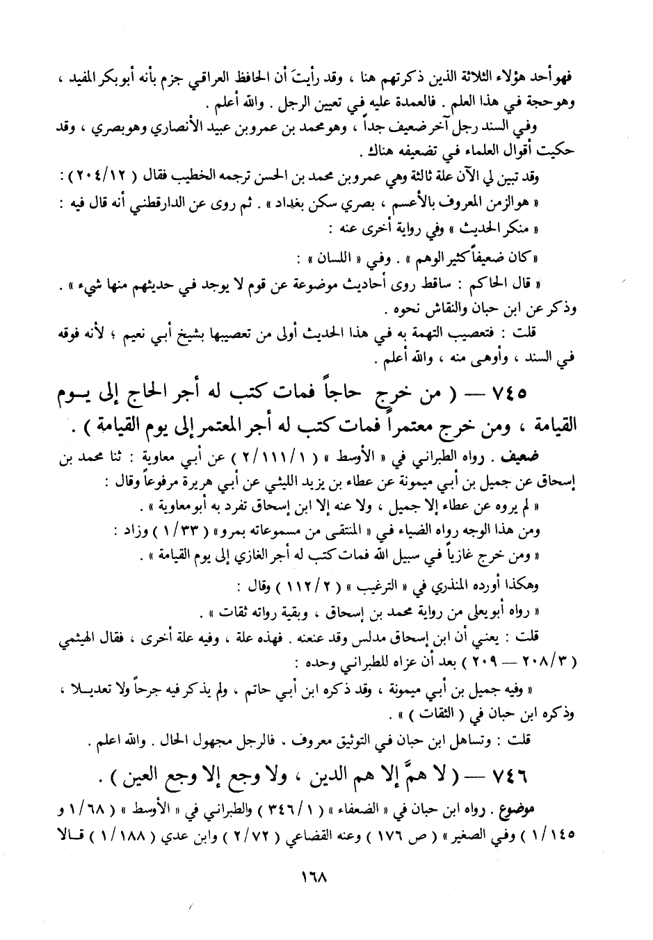 745 - " من خرج حاجا فمات كتب له أجر الحاج إلى يوم القيامة، ومن خرج معتمرا فمات كتب له أجر المعتمر إلى يوم القيامة ".