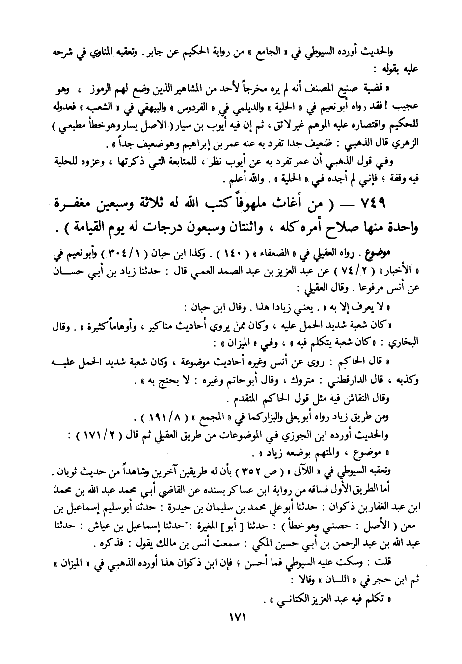 749 - " من أغاث ملهو فا كتب الله له ثلاثة وسبعين مغفرة واحدة منها صلاح أمره كله، واثنتان وسبعون درجات له يوم القيامة ".