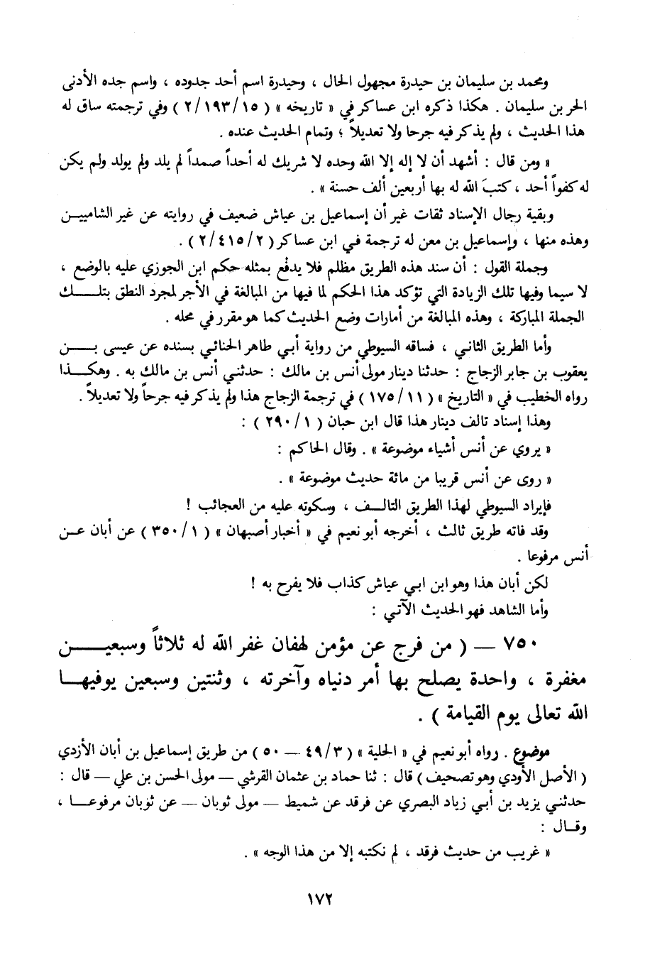 وقال الحاكم: " روى عن أنس قريبا من مائة حديث موضوعة ". فإيراد السيوطي لهذا الطريق التالف، وسكوته عليه من العجائب! وقد فاته طريق ثالث، أخرجه أبو نعيم في " أخبار أصبهان " (1 / 350) عن أبان عن أنس مرفوعا.