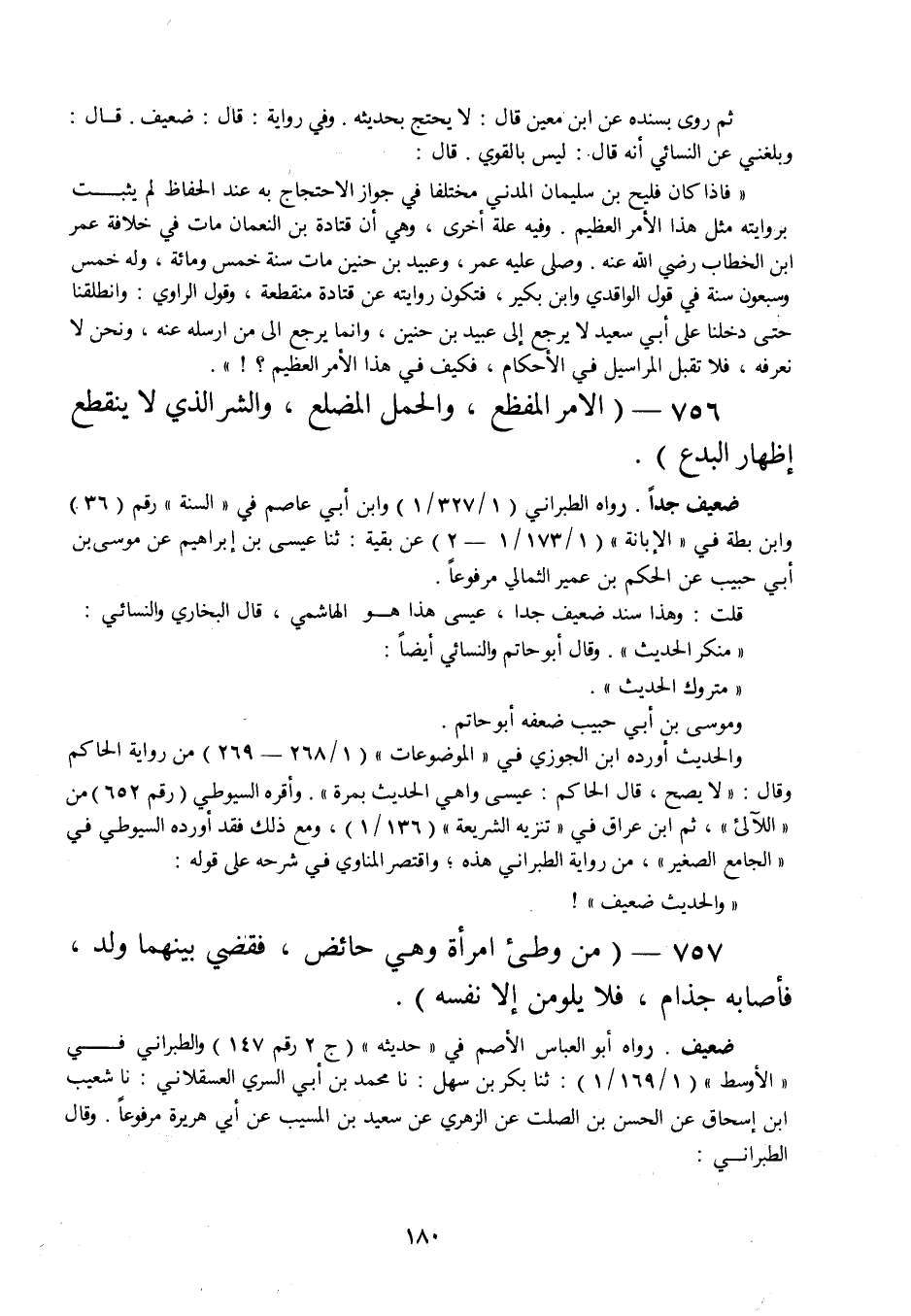 757 - " من وطيء امرأة وهي حائض، فقضى بينهما ولد، فأصابه جذام، فلا يلومن إلا نفسه ".