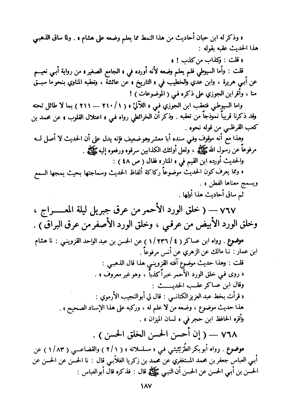 767 - " خلق الورد الأحمر من عرق جبريل ليلة المعراج، وخلق الورد الأبيض من عرقي، وخلق الورد الأصفر من عرق البراق ".