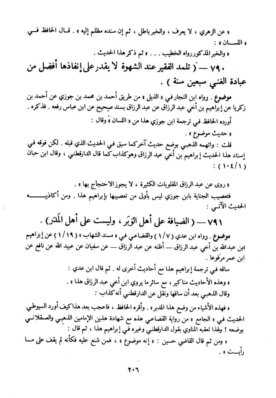 790 - " تلمد الفقير عند الشهو ة لا يقدر على إنفاذها أفضل من عبادة الغني سبعين سنة ".