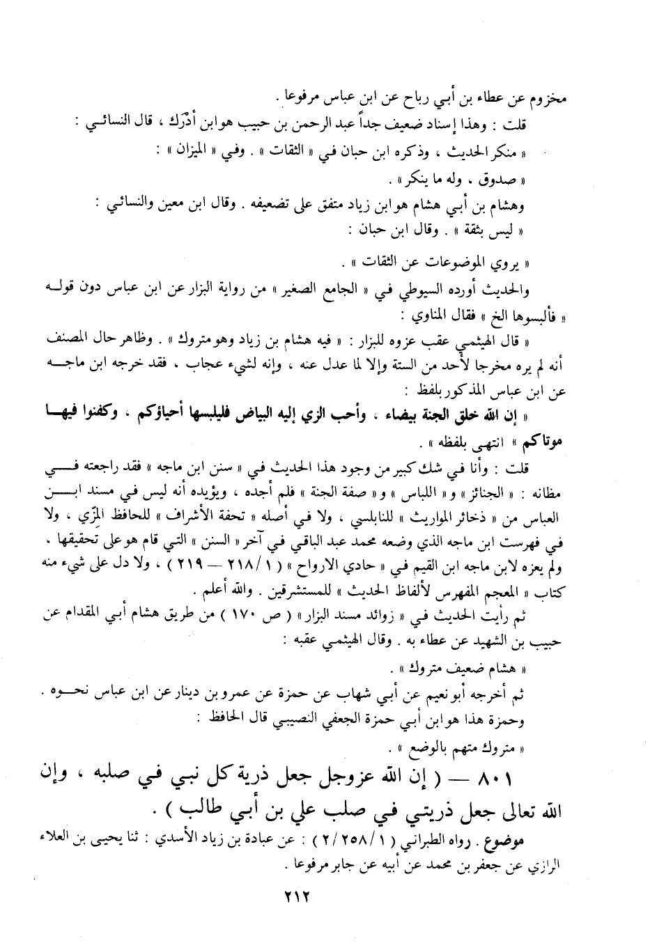 801 - " إن الله عز وجل جعل ذرية كل نبي في صلبه، وإن الله تعالى جعل ذريتي في صلب علي بن أبي طالب ".