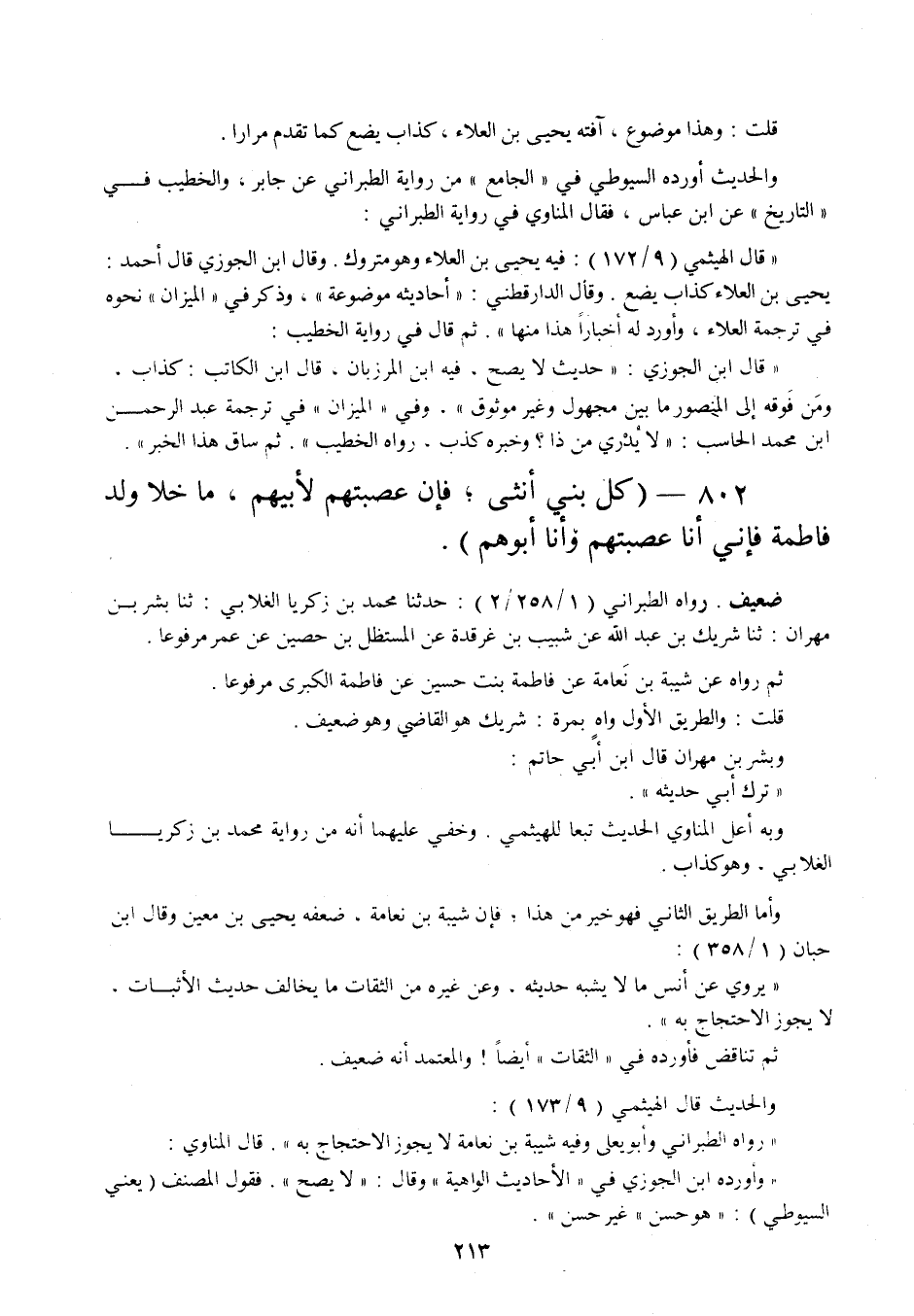 802 - " كل بني أنثى، فإن عصبتهم لأبيهم، ما خلا ولد فاطمة فإني أنا عصبتهم وأنا أبوهم ".