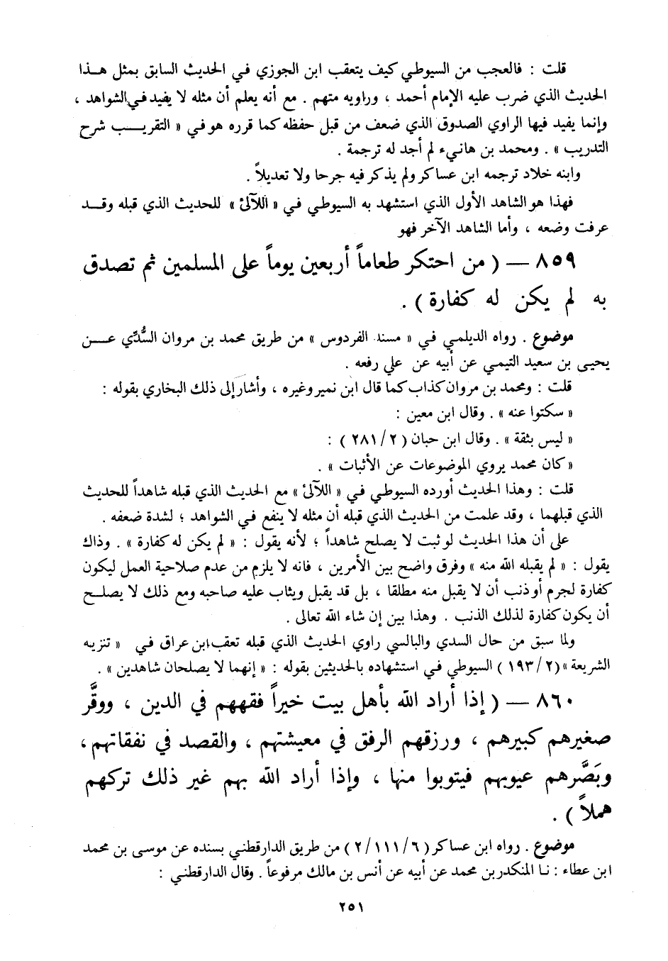 859 - " من احتكر طعاما أربعين يوما على المسلمين ثم تصدق به لم يكن له كفارة ".