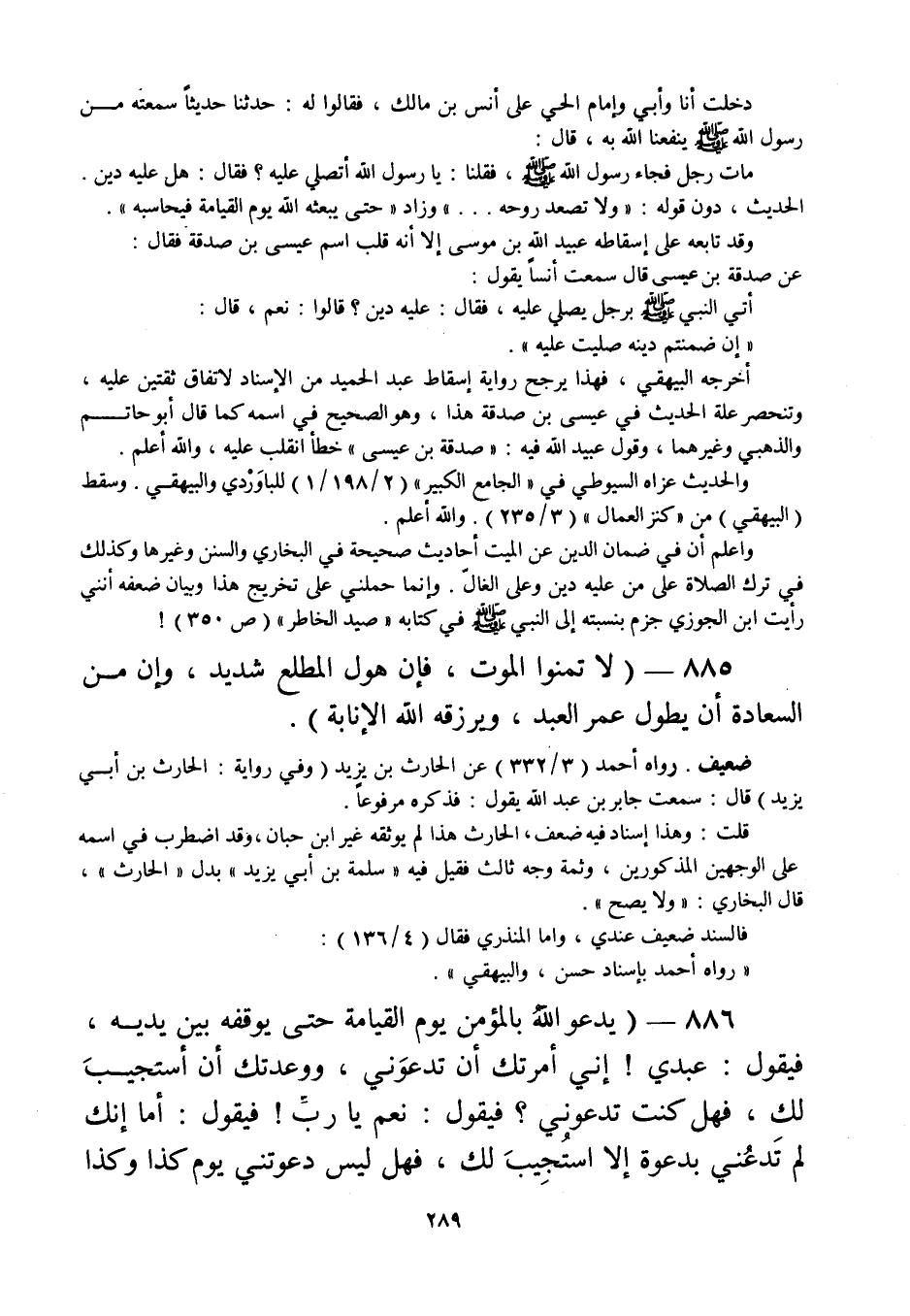 886 - " يدعوالله بالمؤمن يوم القيامة حتى يوقفه بين يديه، فيقول: عبدي! إني أمرتك أن تدعوني، ووعدتك أن أستجيب لك، فهل كنت تدعوني؟ فيقول: نعم يا رب! فيقول: أما إنك لم تدعني بدعوة إلا استجيب لك، فهل ليس دعوتني يوم كذا وكذا