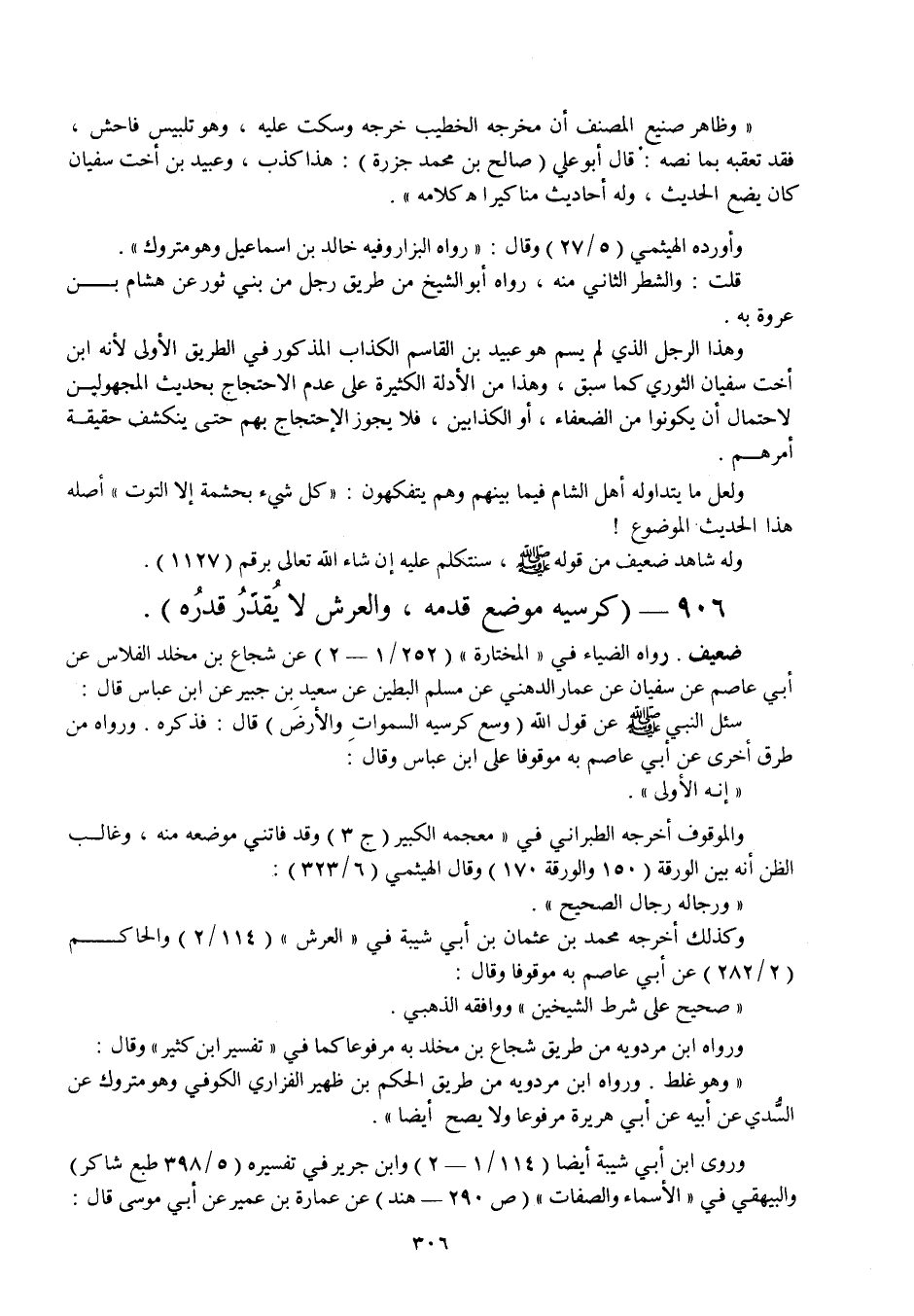 906 - " كرسيه موضع قدمه، والعرش لا يقدر قدره ".