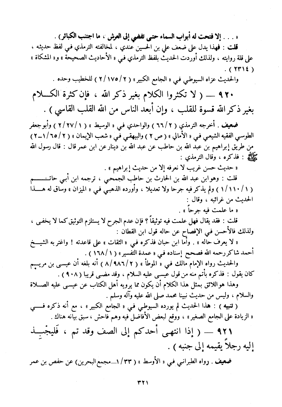 920 - " لا تكثروا الكلام بغير ذكر الله، فإن كثرة الكلام بغير ذكر الله قسوة للقلب، وإن أبعد الناس من الله القلب القاسي ".