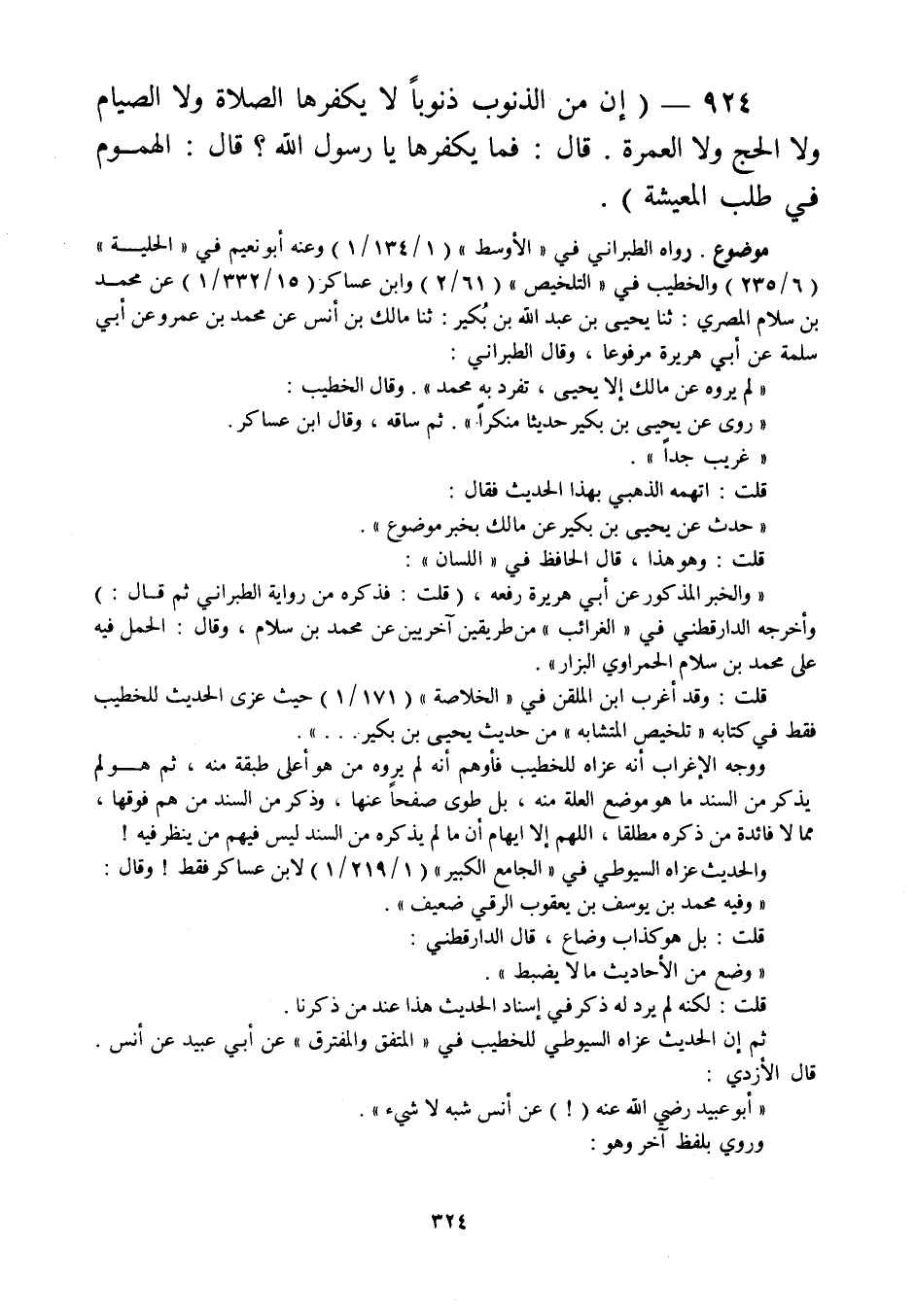 924 - " إن من الذنوب ذنوبا لا يكفرها الصلاة ولا الصيام ولا الحج ولا العمرة. قال: فما يكفرها يا رسول الله؟ قال: الهموم في طلب المعيشة ".