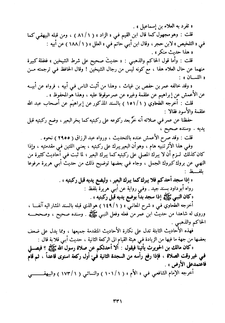 قلت: أخرجه الطحاوي (1 / 151) بالسند المذكور عن إبراهيم عن أصحاب عبد الله علقمة والأسود فقالا: حفظنا عن عمر في صلاته أنه خر بعد ركوعه على ركبتيه كما يخر البعير، وضع ركبتيه قبل يديه. وسنده صحيح.