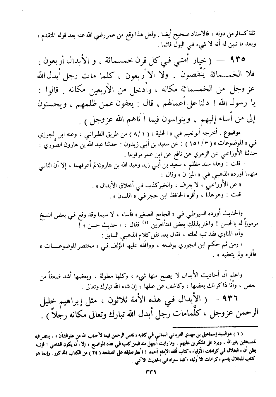 936 - " الأبدال في هذه الأمة ثلاثون، مثل إبراهيم خليل الرحمن عز وجل، كلما مات رجل أبدل الله تبارك وتعالى مكانه رجلا ".