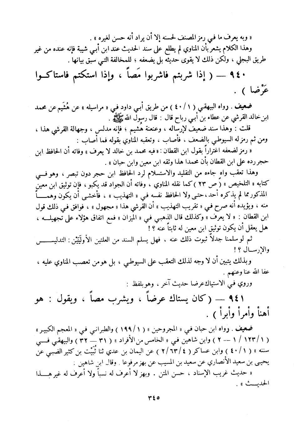 941 - " كان يستاك عرضا، ويشرب مصا، ويقول: هو أهنأ وأمرأ وأبرأ ".