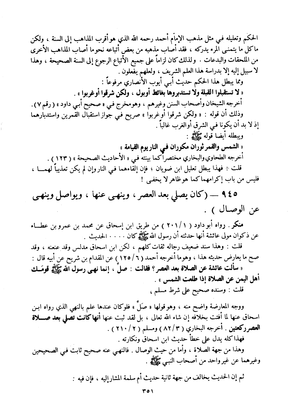 945 - " كان يصلي بعد العصر، وينهى عنها، ويواصل وينهى عن الوصال ".