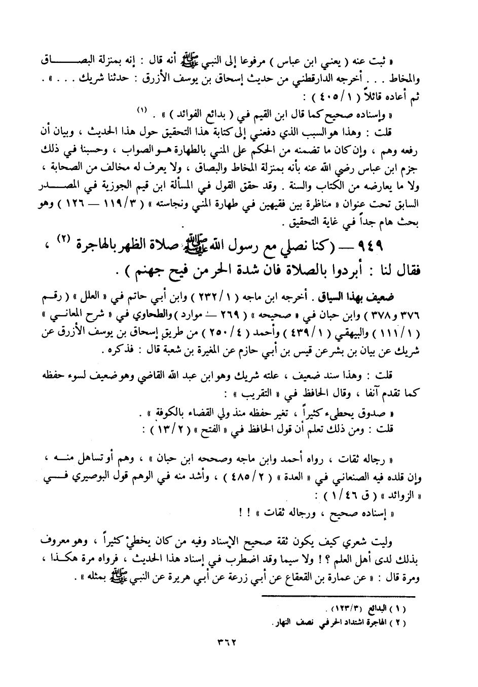 قلت: وهذا هو السبب الذي دفعني إلى كتابة هذا التحقيق حول هذا الحديث، وبيان أن رفعه وهم وإن كان ما تضمنه من الحكم على المني بالطهارة هو الصواب، وحسبنا في ذلك جزم ابن عباس رضي الله عنه بأنه بمنزلة المخاط والبصاق، ولا يعرف له مخالف من الصحابة، ولا ما يعارضه من الكتاب والسنة، وقد حقق القول في المسألة ابن قيم الجوزية في المصدر السابق تحت عنوان " مناظرة بين فقيهين في طهارة المني ونجاسته " (3 / 119 - 126) وهو بحث هام جدا في غاية التحقيق.